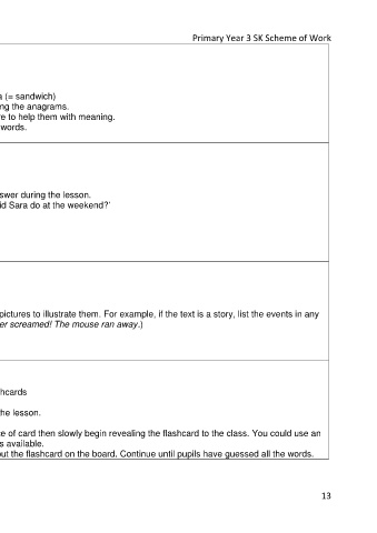 1. Write anagrams of key topic vocabulary words on the board, e.g. n d s w c h i a (= sandwich)
