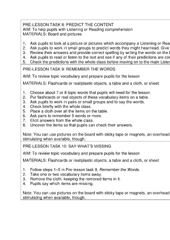 PRE-LESSON TASK 9: REMEMBER THE WORDS