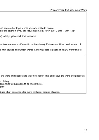2. Write the words in chains of three or four on the board, containing one example of the phoneme you are focusing on, e.g. for /r/ cat : dog : fish : rat