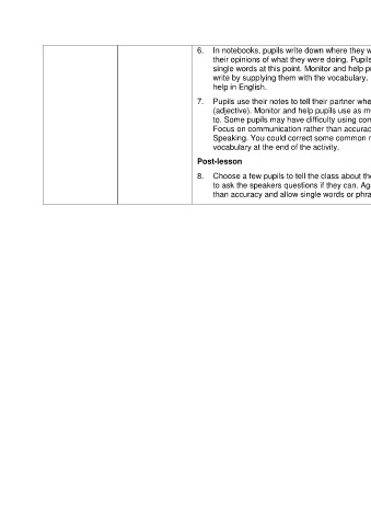 their opinions of what they were doing. Pupils need only write in note form,