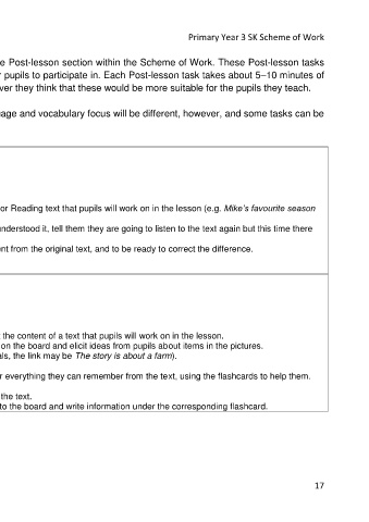 class time. Teachers can, of course, use their own Post-lesson tasks whenever they think that these would be more suitable for the pupils they teach.