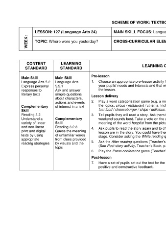 topic (See Post-story activity, Teacher’s Book, p.126). language from the unit, or
