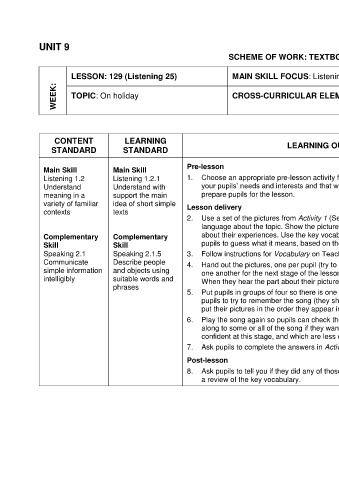 SCHEME OF WORK: TEXTBOOK BASED LESSON (Unit 9)