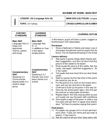 SCHEME OF WORK: NON-TEXTBOOK BASED LESSON (Unit 9)