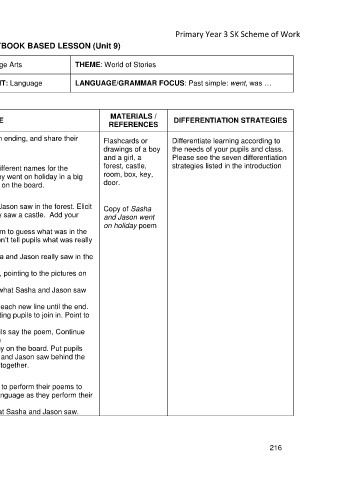SCHEME OF WORK: NON-TEXTBOOK BASED LESSON (Unit 9)