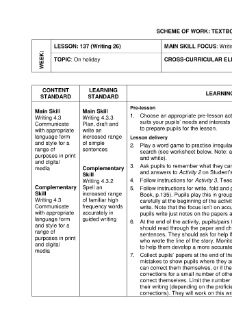 LESSON: 137 (Writing 26) MAIN SKILL FOCUS: Writing THEME: World of self, family and friends