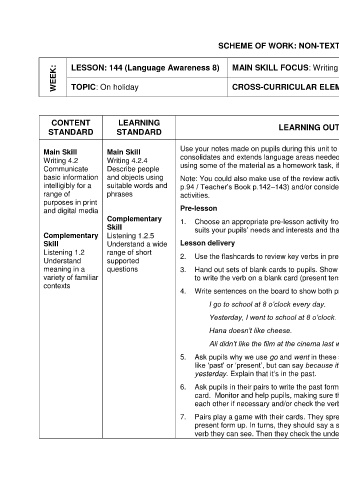 SCHEME OF WORK: NON-TEXTBOOK BASED LESSON (Unit 9)