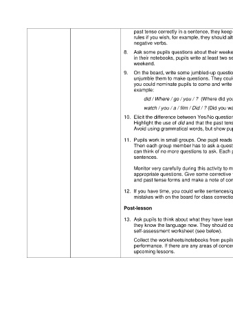 8. Ask some pupils questions about their weekend (see Student’s Book, p.91). Then jumbled up questions