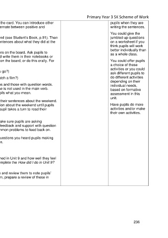 8. Ask some pupils questions about their weekend (see Student’s Book, p.91). Then jumbled up questions