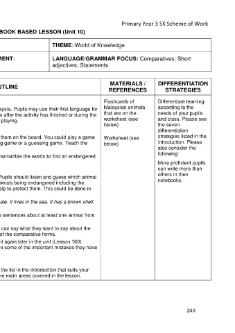 SCHEME OF WORK: NON-TEXTBOOK BASED LESSON (Unit 10)
