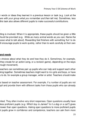 more possible answers, and longer responses. Asking closed questions to less proficient pupils (e.g. Which boy is James? Is it a dog or a cat?) gives