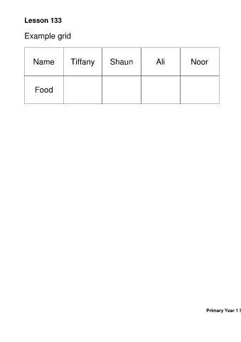 Lesson 133 Example grid Name Tiffany Shaun Ali Noor Food 309 Primary Year 1 Scheme of Work