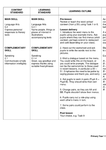 Language Arts Language Arts canteen (from p.50) using Task 1 or 6. the textbook (see