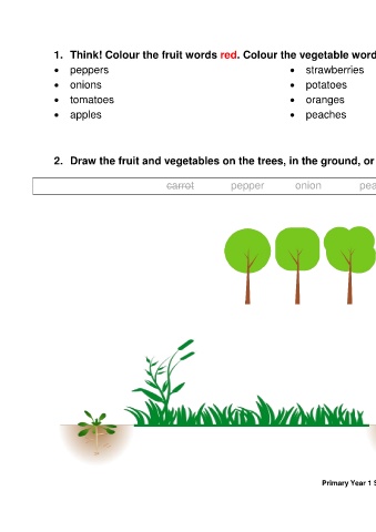 2. Draw the fruit and vegetables on the trees, in the ground, or on the plants