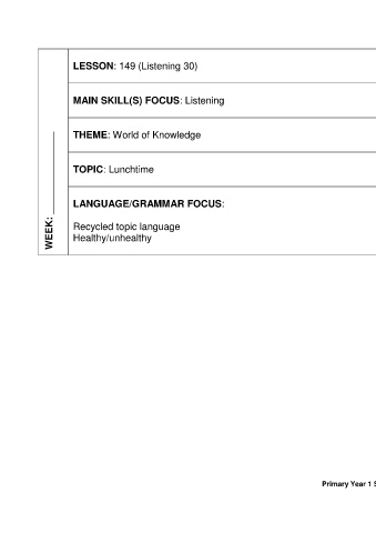 WEEK: _______________      TOPIC: Lunchtime