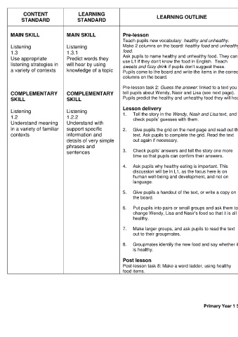 Use appropriate Predict words they Ask pupils to name healthy and unhealthy food. They can on next page appropriate.