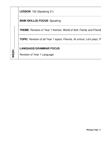 WEEK: _______________ TOPIC: Revision of all Year 1 topics: Friends, At school, Let’s play!, Pet Show and Lunchtime