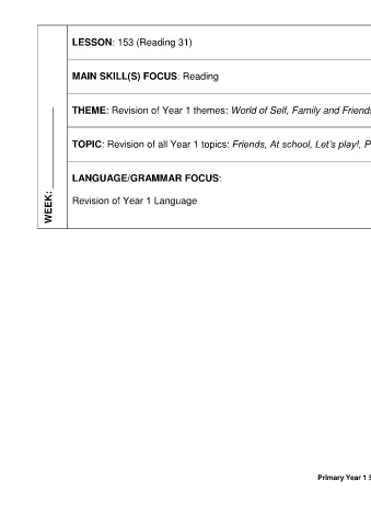 WEEK: _______________ TOPIC: Revision of all Year 1 topics: Friends, At school, Let’s play!, Pet Show and Lunchtime