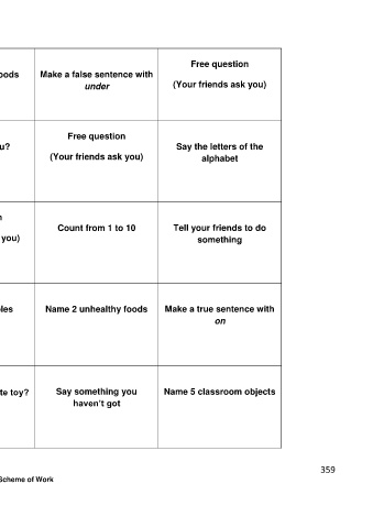 Say 2 things you like Spell an animal name Name 2 healthy foods Make a false sentence with