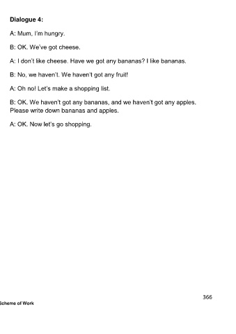 A: I don’t like cheese. Have we got any bananas? I like bananas.