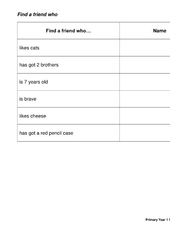 Find a friend who…                                   Name