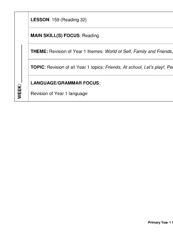WEEK: _______________ TOPIC: Revision of all Year 1 topics: Friends, At school, Let’s play!, Pet Show and Lunchtime