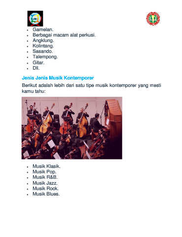 Berikut adalah lebih dari satu tipe musik kontemporer yang mesti