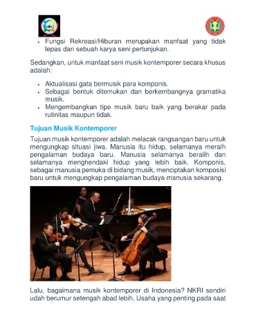 Sedangkan, untuk manfaat seni musik kontemporer secara khusus