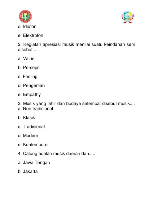 3. Musik yang lahir dari budaya setempat disebut musik....