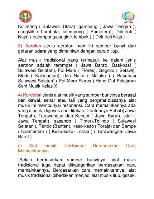 Jawa Tengah), sasando ( Timor),Tolindo ( Sulawesi
