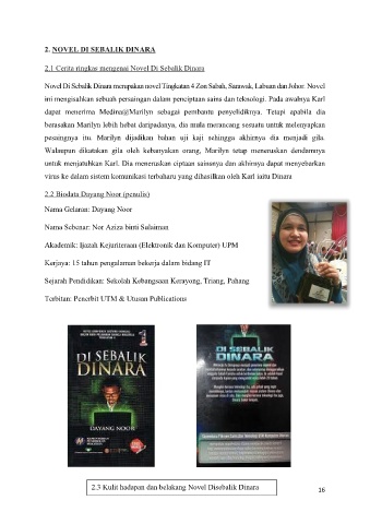 2.3 Kulit hadapan dan belakang Novel Disebalik Dinara 16