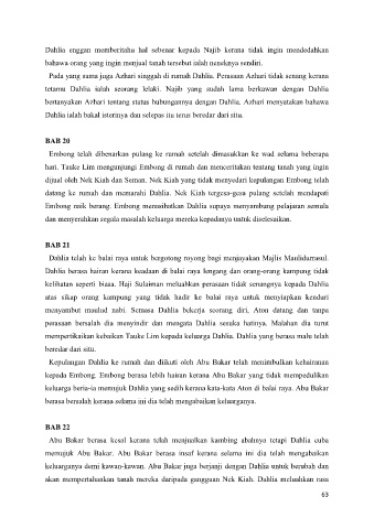 Embong naik berang. Embong menasihatkan Dahlia supaya menyambung pelajaran semula