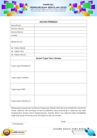 Bahawasanya saya menerima Manual Pengurusan Sekolah 2020 dan telah meneliti dan memahami