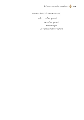 ส ำนักคณะกรรมกำรบริหำรศำลยุติธรรม ๔๖๕ ประกำศ ณ วันที่ ๑๔ กันยำยน พ.ศ. ๒๕๕๔ (ลงชื่อ) สบโชค สุขำรมณ์ (นำยสบโชค สุขำรมณ์) ประธำนศำลฎีกำ ประธำนกรรมกำรบริหำรศำลยุติธรรม