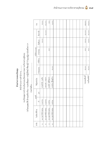 ตัวอย่างการลงทะเบียนคุม ส ำนักอ ำนวยกำร/ส ำนักงำน.............. ทะเบียนคุมกำรเบิกจ่ำยเงินตำมระเบียบคณะกรรมกำรบริหำรศำลยุติธรรม ว่ำด้วยคุณสมบัติ ลักษณะต้องห้ำม กำรแต่งตั้งและกำรปฏิบัติหน้ำที่ของผู้ก ำกับดูแลผู้ถูกปล่อยชั่วครำวฯ ประจ ำเดือน................................................... ชื่อผู้ขอรับเงิน ค่ำตอบแทน นำยแจ้งจับ กุมเงิน ร.ต.ท.สง่ำ งำมมำก นำยไล้ ไม่มีเงินมำก นำยช่วย ผู้ใหญ่บ้ำน