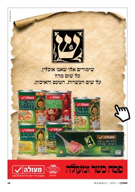 שימורים אלו שאנו אוכלין. על שום מה? על שום הכשרות .הטעם והאיכות. כשר לפסח בהשגחת בד"ץ העדה החרדית לימות השנה פסח כשר ומעולה 14 המגזין | +גליון | 7ג' ניסן 19.3.18