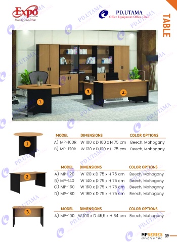 2. A) MP-120 W 120 x D 75 x H 75 cm Beech, Mahogany
