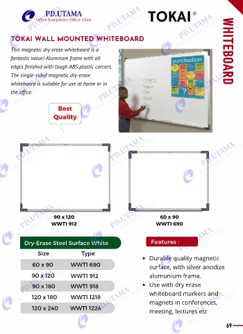Dry-Erase Steel Surface White Features :