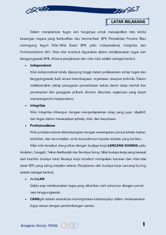 dasar BPK yang saling berjalan selaras. Penjabaran dari budaya kerja Lancang Kuning