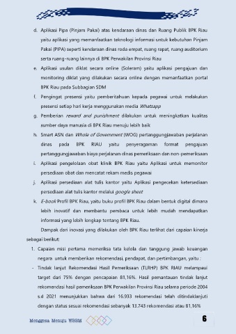 d. Aplikasi Pipa (Pinjam Pakai) atas kendaraan dinas dan Ruang Publik BPK Riau
