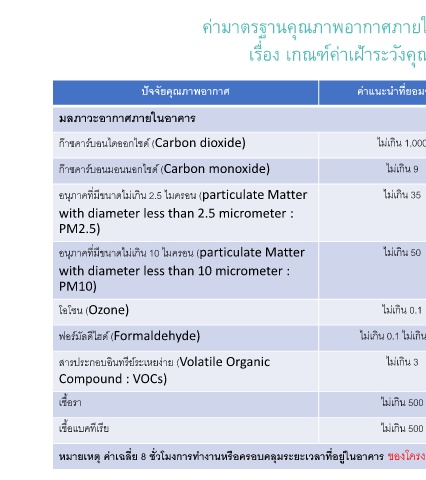 เรือง เกณฑ์ค่าเฝาระวังคุณภาพอากาศภายในอาคาร
