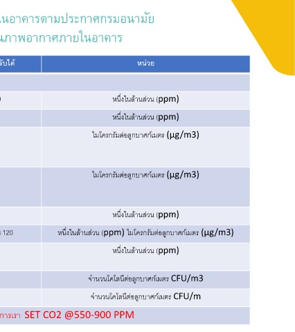 ค่ามาตรฐานคุณภาพอากาศภายในอาคารตามประกาศกรมอนามัย