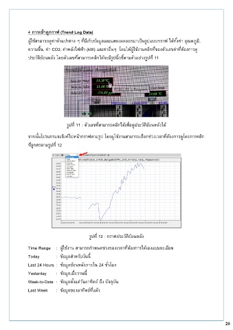 ผู้ใช้สามารถดูค่าตัวแปรตาง ๆ ทีมีเก็บข้อมูลและแสดงผลออกมาเปนรูปแบบกราฟ ได้ทั้งค่า อุณหภูมิ,
