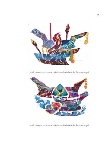 97 ี่ ภาพที่ 3.74 ผลงานแบบร่างทางความคิดโครงการที่2 ครั้งท1 ชิ้นท 4 เรือกอและประยุกต์ ี่ ภาพที่ 3.75 ผลงานแบบร่างทางความคิดโครงการที่2 ครั้งท1 ชิ้นท 5 เรือกอและประยุกต์ ี่ ี่