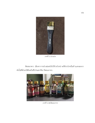 136 ภาพที่ 3.143 แปรง สีผสมอาหาร เนื่องจากการนำแผ่นหนังไปใช้ประโยชน์ จะใช้ประโยชน์ในด้านแสงและเงา ดังนั้นสีที่นำมาใช้ต้องเป็นสีโปร่งแสง ได้แก สีผสมอาหาร ่ ภาพที่ 3.144 สีผสมอาหาร