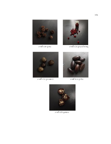 196 ภาพที่ 4.49 ลูกสน ภาพที่ 4.50 ลูกมะกล่ำตาหนู ภาพที่ 4.51 ลูกยางพารา ภาพที่ 4.52 ลูกประ ภาพที่ 4.53 ลูกหมาก