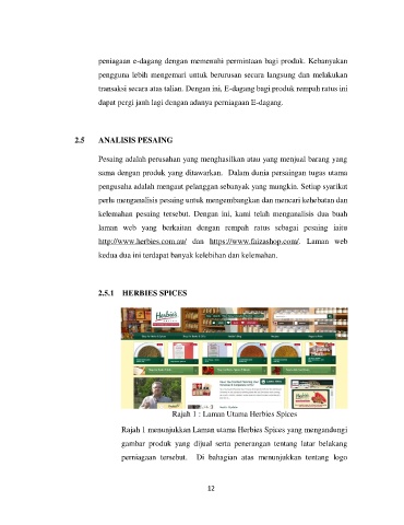 Rajah 1 menunjukkan Laman utama Herbies Spices yang mengandungi