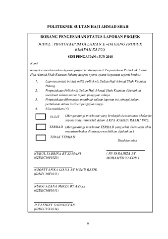 1. Laporan projek ini hak milik Politeknik Sultan Haji Ahmad Shah Kuantan