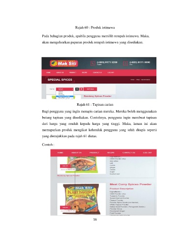 Pada bahagian produk, apabila pengguna memilih rempah istimewa. Maka,