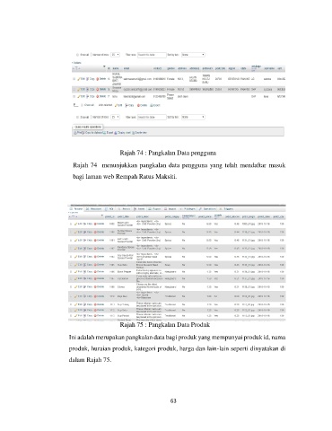 Rajah 74 menunjukkan pangkalan data pengguna yang telah mendaftar masuk